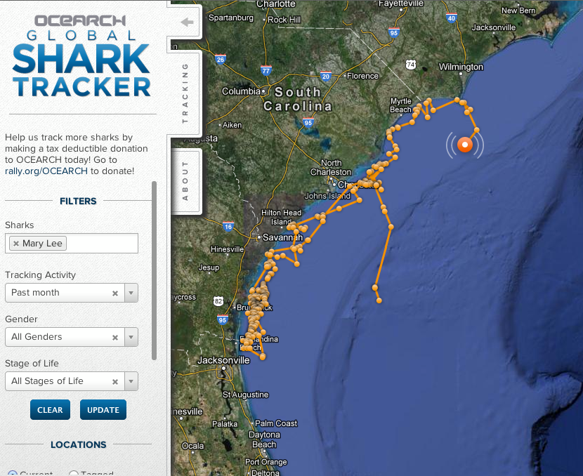 Katharine, Mary Lee, Poseidon, Miguel and seventy-nine others (there’s even an Oprah) have been tagged with transmitters that let researchers know their whereabouts every time their dorsal fin breaks the surface of the sea. Some of the sharks have these crazy trajectories and no one knows what they’re up to, what drives them to swim where they swim. Recently, when I was having a rough day, I found myself thinking about the Ocearch sharks. I felt myself relax, contemplating their mysterious peregrinations. It helped put things in perspective.It’s bracing to think about how much we don’t know, how much bigger the picture is than what we see at any given moment.
